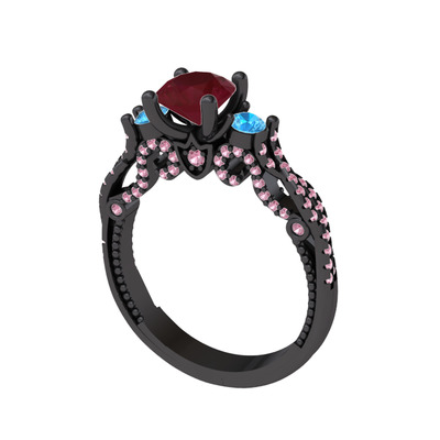 Kök yakut, akuamarin ve pembe kuvars 925 ayar siyah rodyum kaplama gümüş yüzük