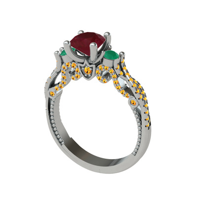 Kök yakut, kök zümrüt ve sitrin 925 ayar gümüş yüzük