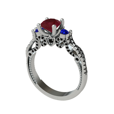 Kök yakut, lab safir ve siyah zirkon 14 ayar beyaz altın yüzük