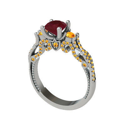Kök yakut ve sitrin 14 ayar beyaz altın yüzük