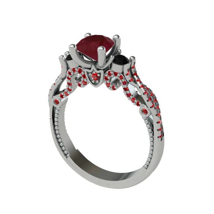 Kök yakut, siyah zirkon ve garnet 925 ayar gümüş yüzük