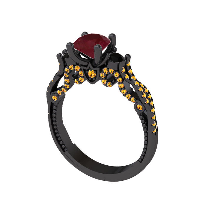 Kök yakut, siyah zirkon ve sitrin 925 ayar siyah rodyum kaplama gümüş yüzük
