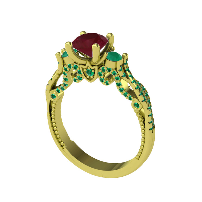 Kök yakut ve yeşil kuvars 925 ayar altın kaplama gümüş yüzük
