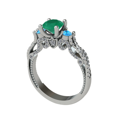 Kök zümrüt, akuamarin ve beyaz zirkon 14 ayar beyaz altın yüzük