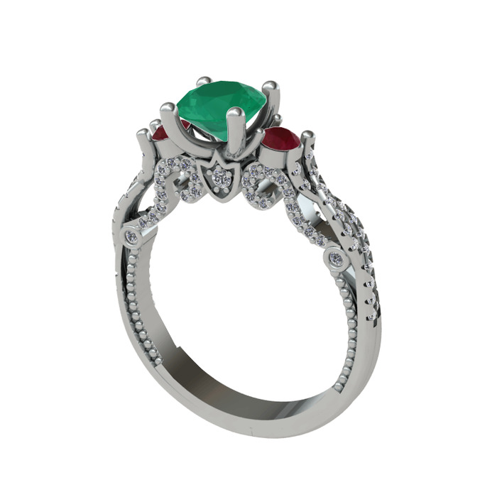 Kök zümrüt, kök yakut ve pırlanta 18 ayar beyaz altın yüzük (0.792 karat)