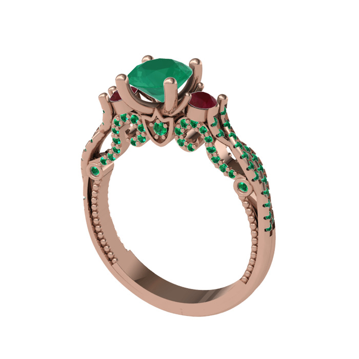 Kök zümrüt, kök yakut ve yeşil kuvars 8 ayar rose altın yüzük