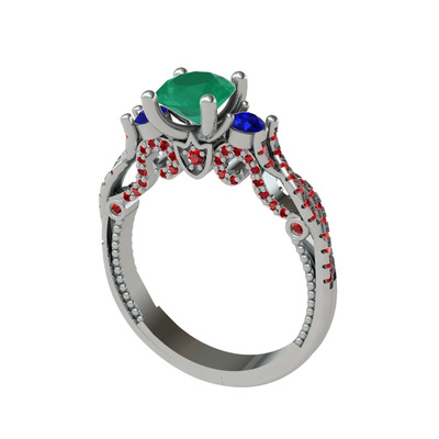 Kök zümrüt, lab safir ve garnet 8 ayar beyaz altın yüzük