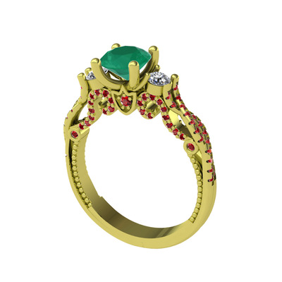 Kök zümrüt, pırlanta ve garnet 8 ayar altın yüzük (0.22 karat)