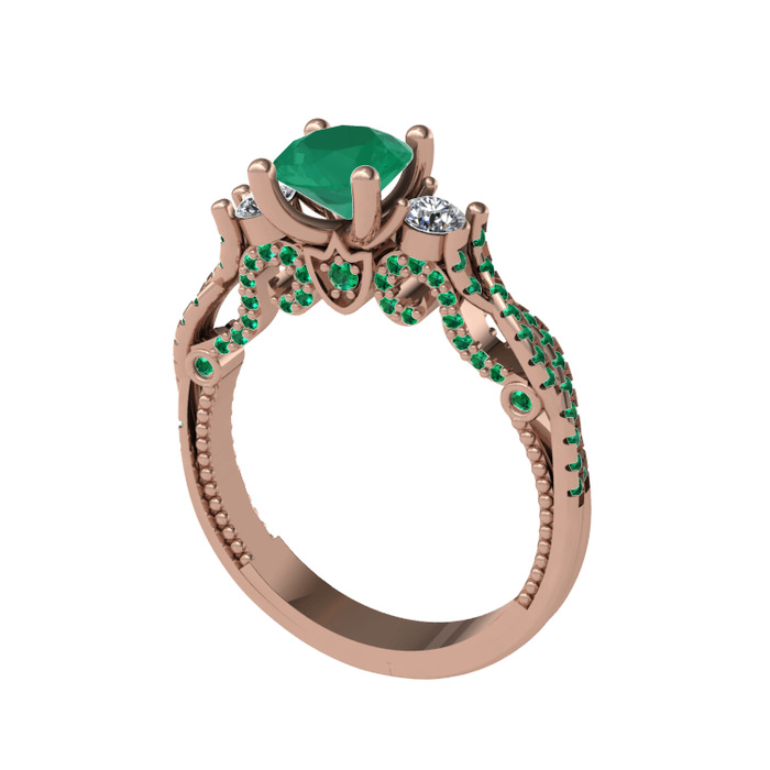 Kök zümrüt, pırlanta ve yeşil kuvars 18 ayar rose altın yüzük (0.22 karat)