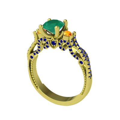 Kök zümrüt, sitrin ve lab safir 18 ayar altın yüzük