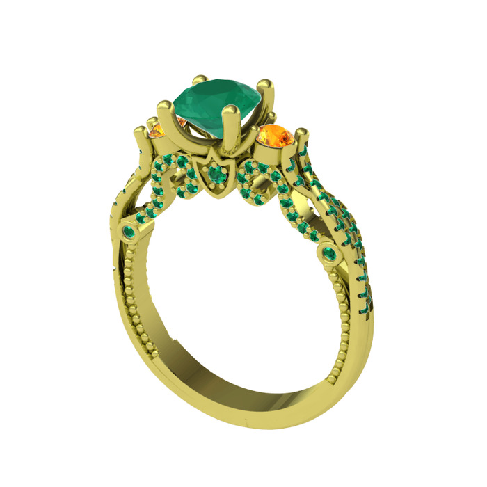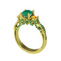 Kök zümrüt, sitrin ve yeşil kuvars 14 ayar altın yüzük