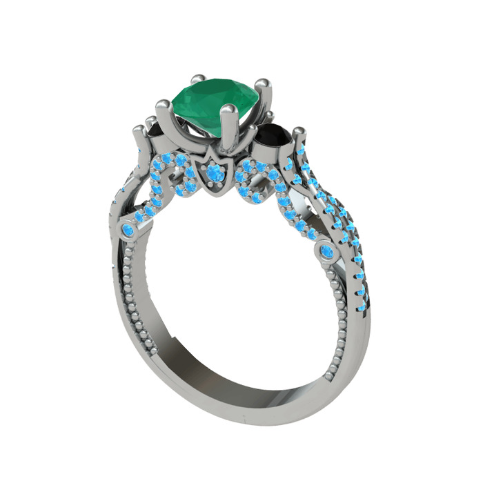 Kök zümrüt, siyah zirkon ve akuamarin 925 ayar gümüş yüzük