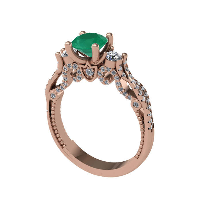 Kök zümrüt ve swarovski 18 ayar rose altın yüzük