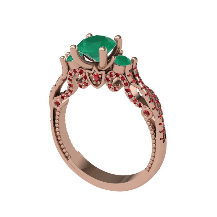 Kök zümrüt, yeşil kuvars ve garnet 925 ayar rose altın kaplama gümüş yüzük