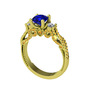Lab safir, beyaz zirkon ve sitrin 8 ayar altın yüzük