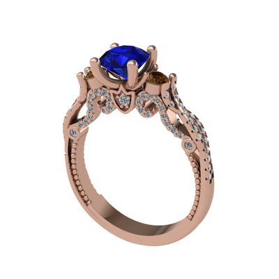 Lab safir, dumanlı kuvars ve swarovski 18 ayar rose altın yüzük