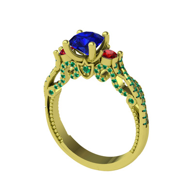 Lab safir, garnet ve yeşil kuvars 925 ayar altın kaplama gümüş yüzük