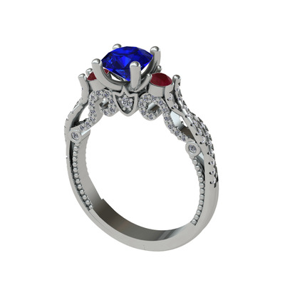 Lab safir, kök yakut ve pırlanta 8 ayar beyaz altın yüzük (0.792 karat)