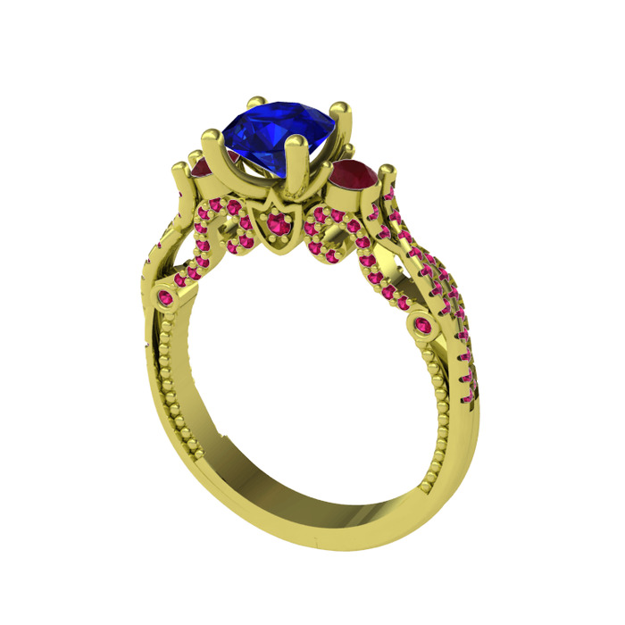 Lab safir, kök yakut ve rodolit garnet 14 ayar altın yüzük