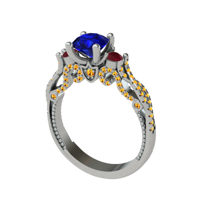 Lab safir, kök yakut ve sitrin 925 ayar gümüş yüzük