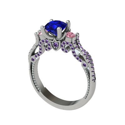 Lab safir, pembe kuvars ve ametist 14 ayar beyaz altın yüzük