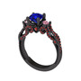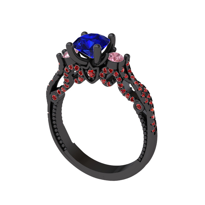 Lab safir, pembe kuvars ve garnet 925 ayar siyah rodyum kaplama gümüş yüzük