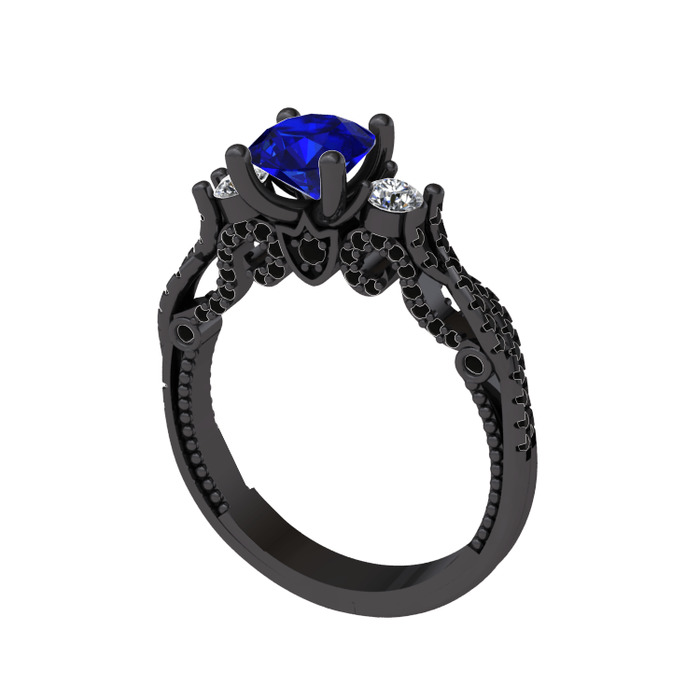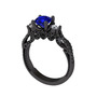 Lab safir, pırlanta ve siyah zirkon 925 ayar siyah rodyum kaplama gümüş yüzük (0.22 karat)