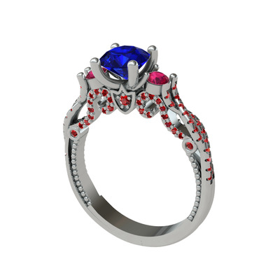 Lab safir, rodolit garnet ve garnet 18 ayar beyaz altın yüzük