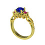 Lab safir, rodolit garnet ve sitrin 14 ayar altın yüzük