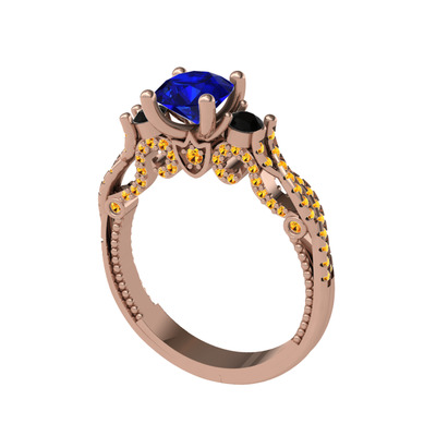 Lab safir, siyah zirkon ve sitrin 14 ayar rose altın yüzük