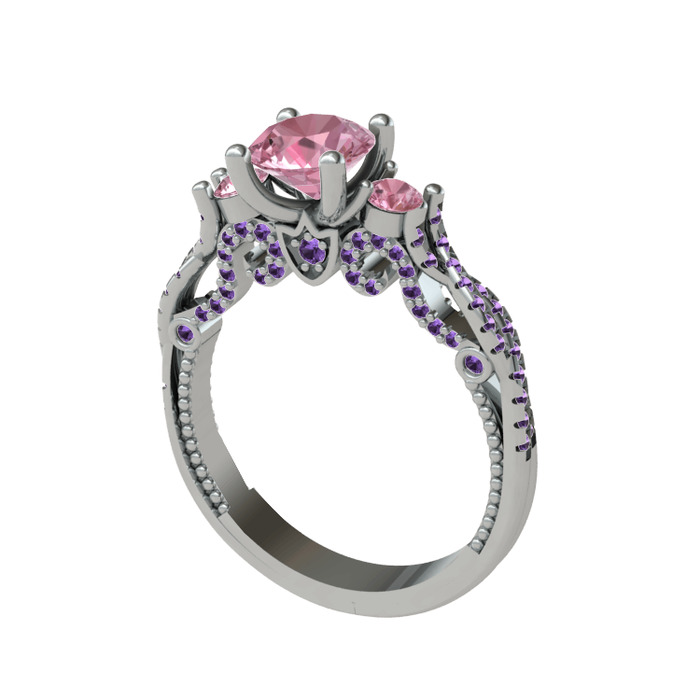 Pembe kuvars ve ametist 925 ayar gümüş yüzük