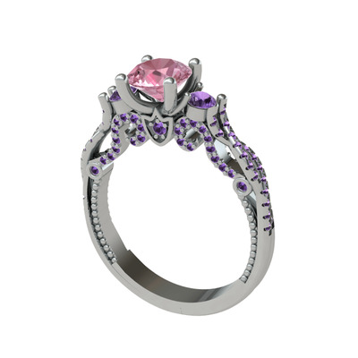 Pembe kuvars ve ametist 925 ayar gümüş yüzük
