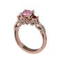 Pembe kuvars, kök yakut ve pırlanta 18 ayar rose altın yüzük (0.792 karat)
