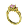 Pembe kuvars, kök yakut ve sitrin 14 ayar altın yüzük