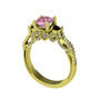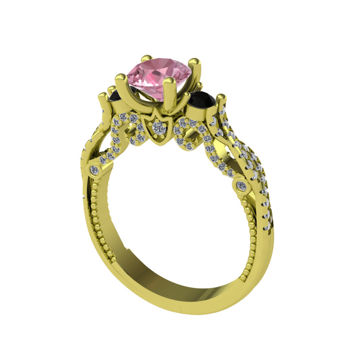 Pembe kuvars, siyah zirkon ve beyaz zirkon 925 ayar altın kaplama gümüş yüzük