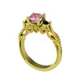Pembe kuvars, siyah zirkon ve sitrin 14 ayar altın yüzük