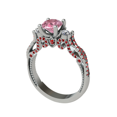 Pembe kuvars, swarovski ve garnet 18 ayar beyaz altın yüzük