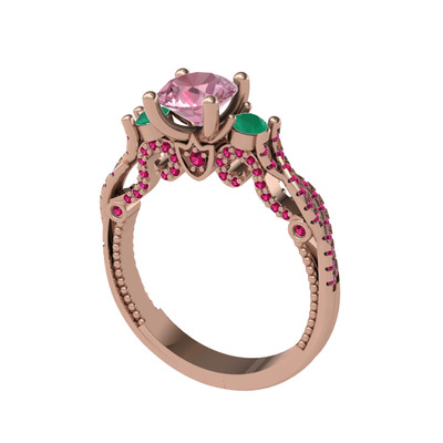 Pembe kuvars, yeşil kuvars ve rodolit garnet 18 ayar rose altın yüzük