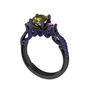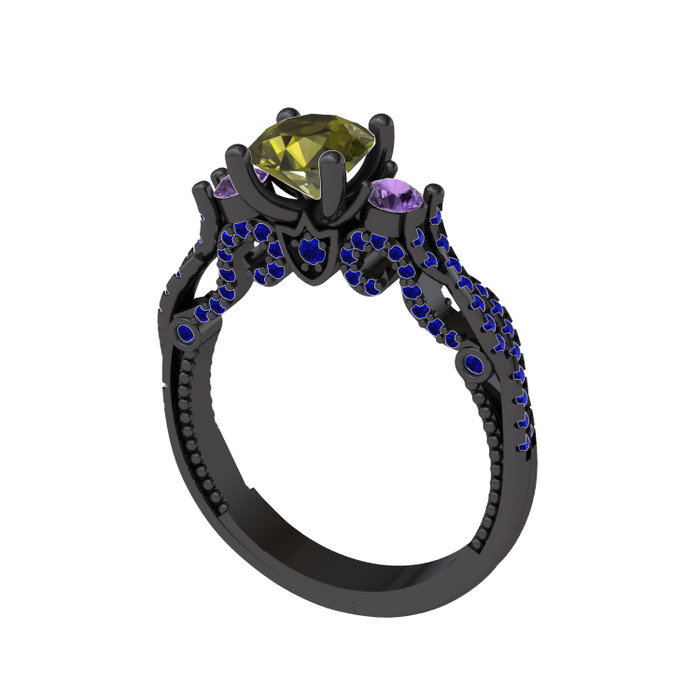 Peridot, ametist ve lab safir 925 ayar siyah rodyum kaplama gümüş yüzük