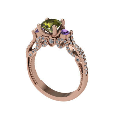 Peridot, ametist ve pırlanta 14 ayar rose altın yüzük (0.792 karat)