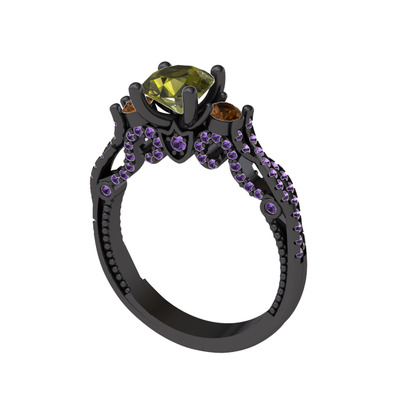 Peridot, dumanlı kuvars ve ametist 925 ayar siyah rodyum kaplama gümüş yüzük