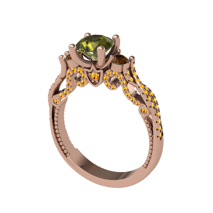 Peridot, dumanlı kuvars ve sitrin 14 ayar rose altın yüzük