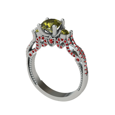 Peridot ve garnet 8 ayar beyaz altın yüzük