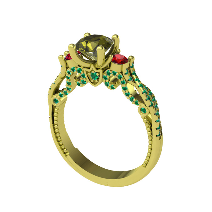 Peridot, garnet ve yeşil kuvars 14 ayar altın yüzük