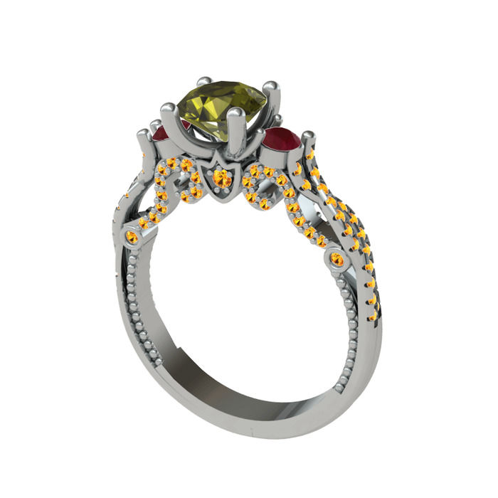 Peridot, kök yakut ve sitrin 14 ayar beyaz altın yüzük