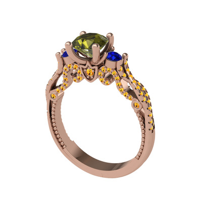 Peridot, lab safir ve sitrin 8 ayar rose altın yüzük