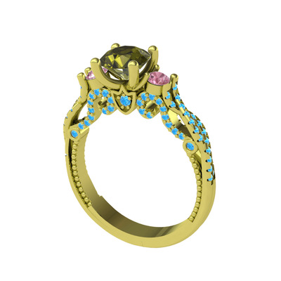 Peridot, pembe kuvars ve akuamarin 925 ayar altın kaplama gümüş yüzük