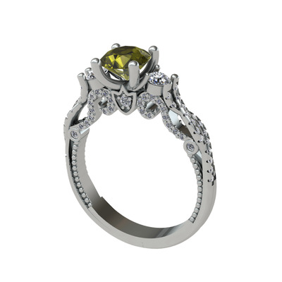 Peridot ve pırlanta 8 ayar beyaz altın yüzük (1.012 karat)