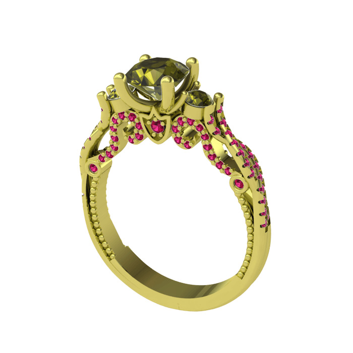 Peridot ve rodolit garnet 14 ayar altın yüzük