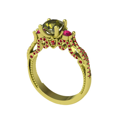 Peridot, rodolit garnet ve garnet 18 ayar altın yüzük